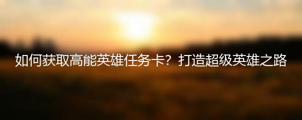 想要成为一名高能英雄,除了拥有超凡的能力和强大的意志力外,还需要一张高能英雄任务卡。这张神奇的任务卡能够为你提供各种任务和挑战,帮助你不断成长和提升自己的能力。那么,如何才能获取这张任务卡呢?下面就为大家详细介绍。