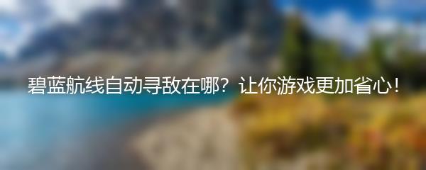 碧蓝航线自动寻敌在哪?让你游戏更加省心!