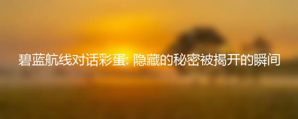 碧蓝航线对话彩蛋: 隐藏的秘密被揭开的瞬间