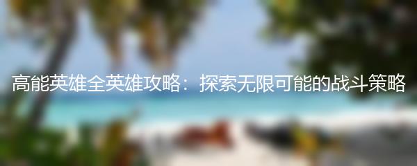 高能英雄全英雄攻略:探索无限可能的战斗策略,高能英雄已成为现今游戏界的焦点话题。无论是游戏本身的创新性和战斗体验,还是英雄的个性化和技能系统,都吸引了大批玩家的注意。今天我们将为大家带来一份全英雄攻略,帮助大家更好地了解各个英雄的特点和战斗技巧。