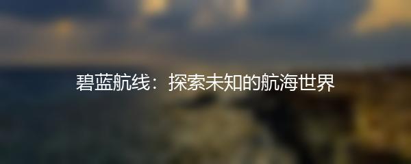 碧蓝航线:探索未知的航海世界