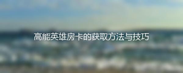 高能英雄是一款备受玩家喜爱的游戏,其中房卡作为游戏内的重要资源,对于提升游戏体验起着至关重要的作用。那么,大家都想知道高能英雄房卡怎么获得呢?下面就为大家详细介绍一下。