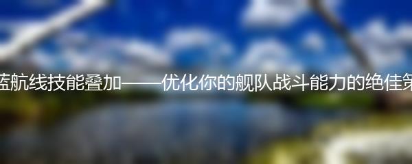 碧蓝航线技能叠加——优化你的舰队战斗能力的绝佳策略