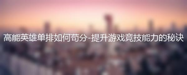 高能英雄单排如何苟分-提升游戏竞技能力的秘诀