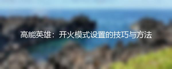 高能英雄:开火模式设置的技巧与方法