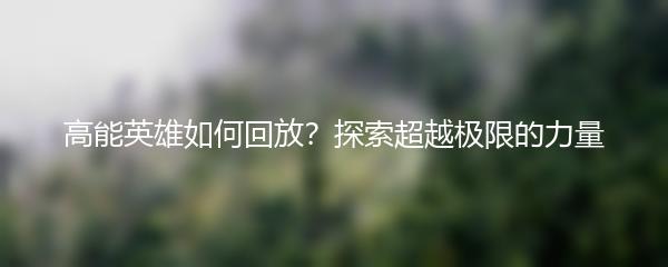 高能英雄如何回放?这是一个引人入胜的问题。高能英雄以其超人的力量和惊人的能力,成为了人们心目中的英雄。但是,他们的力量究竟来自哪里?他们又是如何回放这些能力的呢?在本文中,我们将深入探索高能英雄的回放之道。