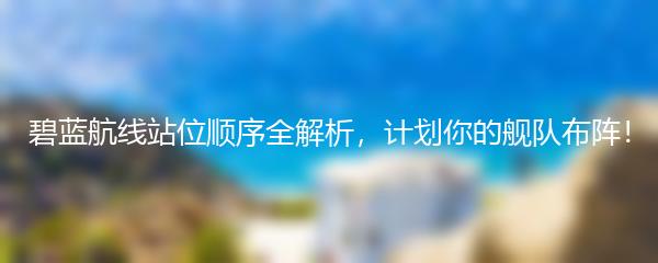 碧蓝航线站位顺序全解析,计划你的舰队布阵!