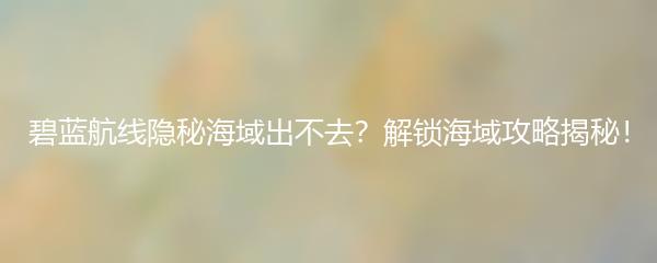 碧蓝航线隐秘海域出不去?解锁海域攻略揭秘!