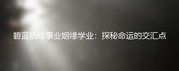 碧蓝航线事业姻缘学业是近年来备受瞩目的研究领域,通过探究事业、姻缘和学业之间的关系,揭示了命运的交汇点所蕴藏的奥秘。本文将从以下几个方面展开阐述。