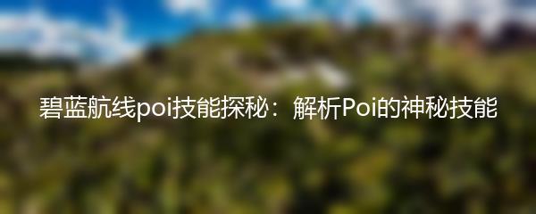 碧蓝航线poi技能探秘:解析Poi的神秘技能