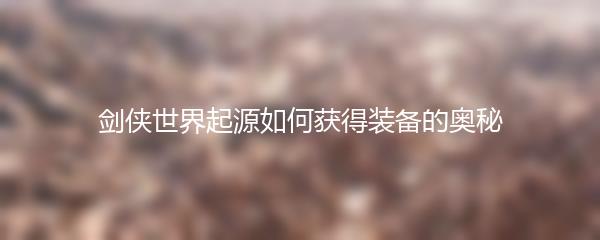 剑侠世界起源如何获得装备的奥秘