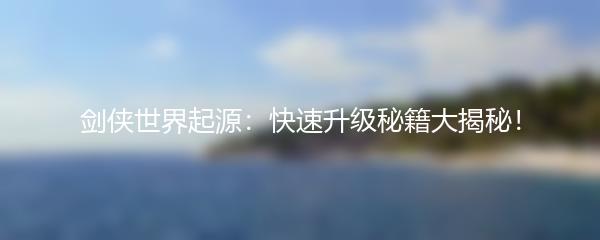 想要在剑侠世界起源中快速升级?不妨试试以下秘籍!