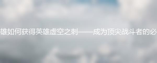高能英雄如何获得英雄虚空之刺——成为顶尖战斗者的必经之路