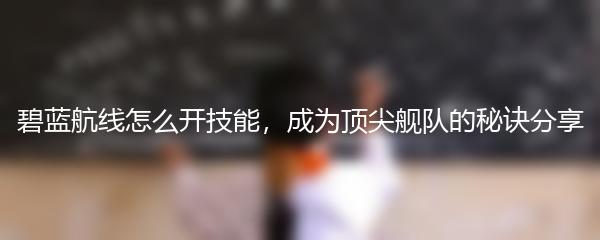 碧蓝航线怎么开技能,成为顶尖舰队的秘诀分享