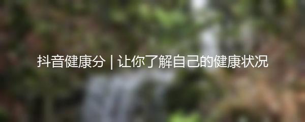 抖音健康分 | 让你了解自己的健康状况