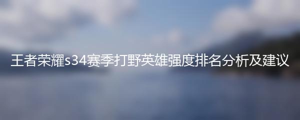 王者荣耀s34赛季打野英雄强度排名分析及建议