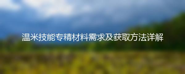 - 任务奖励:完成特定任务可以获得一些温米技能专精材料。