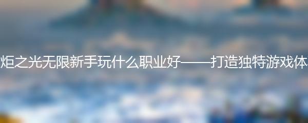 火炬之光无限新手玩什么职业好——打造独特游戏体验