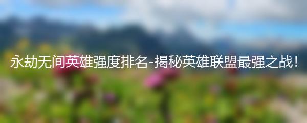永劫无间英雄强度排名-揭秘英雄联盟最强之战!