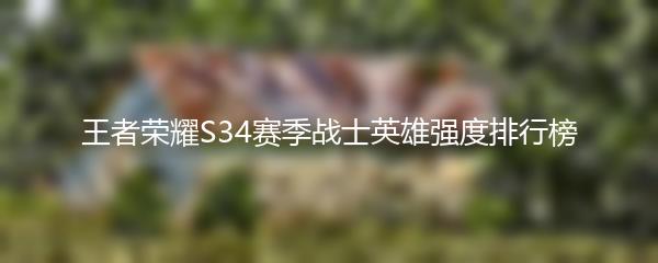 王者荣耀S34赛季战士英雄强度排行榜公布