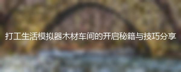 打工生活模拟器木材车间的开启秘籍与技巧分享