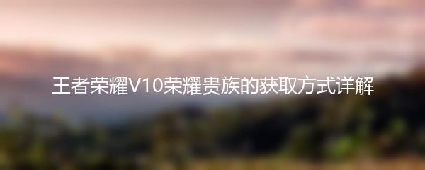 王者荣耀V10荣耀贵族的获取方式详解