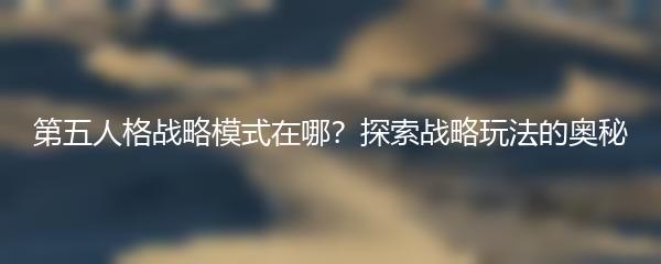 第五人格是一款备受热爱者推崇的多人对战游戏,其中的战略模式更是吸引了大批玩家。那么,第五人格战略模式在哪?接下来我们将深入探索这个引人注目的游戏玩法。