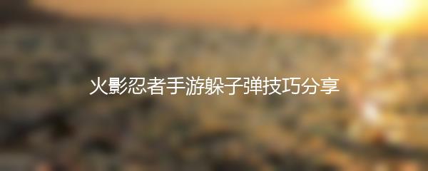 火影忍者手游躲子弹技巧分享