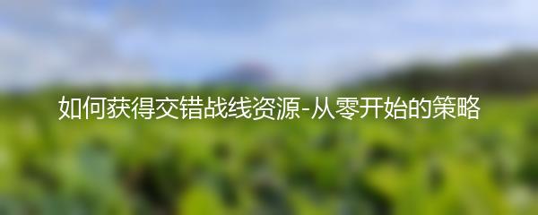 交错战线资源是在战争策略游戏中非常重要的一种资源。想要在游戏中提升自己的实力,获得更多的资源是必不可少的。在本文中,我们将分享一些从零开始的策略,帮助你更好地获得交错战线资源。