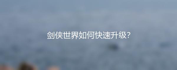 剑侠世界如何快速升级?
