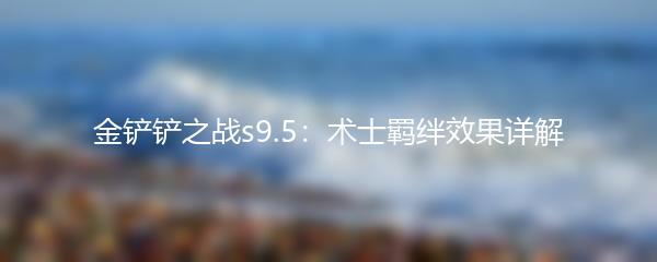 金铲铲之战s9.5中,术士羁绊效果是非常重要的一部分。在游戏中,术士羁绊可以为玩家带来巨大的优势,影响着整个局势的走向。本文将详细介绍金铲铲之战s9.5中术士羁绊效果,让玩家对其有更深入的了解。