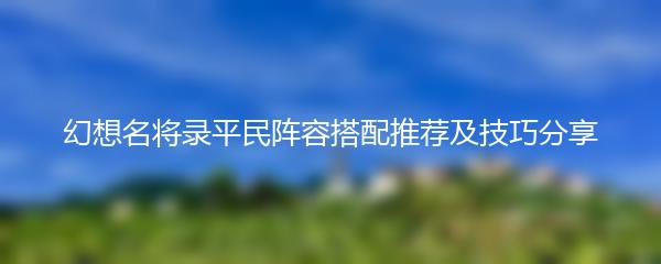 幻想名将录是一款热门的战斗策略游戏,玩家可以通过收集并搭配各种角色来组建自己的最强阵容。对于一些平民玩家来说,在拥有稀有角色之前,如何利用现有的资源去搭配一个强力的阵容成为了关注的焦点。本文将为大家分享一些幻想名将录平民阵容的搭配推荐及技巧。