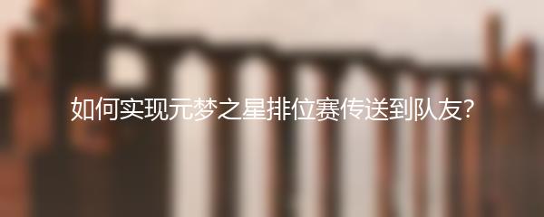 跟随以下方法,学会如何在元梦之星排位赛中传送到队友: