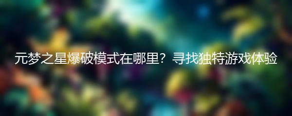 元梦之星爆破模式在哪里?寻找独特游戏体验