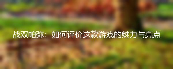 战双帕弥是一款备受瞩目的游戏,它的魅力和亮点吸引着众多玩家的目光。在本文中,我们将详细探讨战双帕弥的特点,了解它为何能够在竞争激烈的游戏市场中脱颖而出。