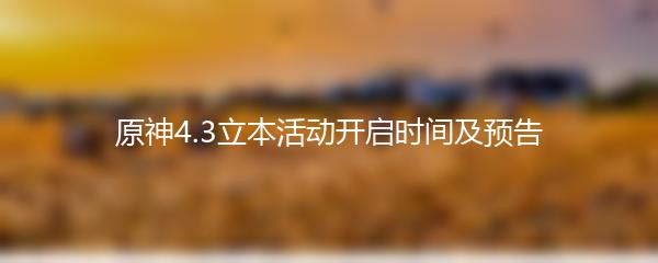 以上就是为大家带来的原神4.3立本活动开启时间及预告。相信这场活动一定会给玩家们带来一段难忘的游戏体验。大家不要错过这次机会,快来参与吧!