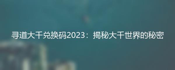 寻道大千兑换码2023:揭秘大千世界的秘密