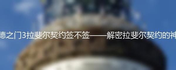 博德之门3拉斐尔契约签不签——解密拉斐尔契约的神秘