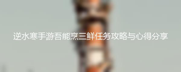 以上就是为大家带来的《逆水寒手游吾能烹三鲜任务攻略与心得分享》。希望这些攻略和心得能帮助到各位玩家,愿你在游戏中取得更多的胜利!
