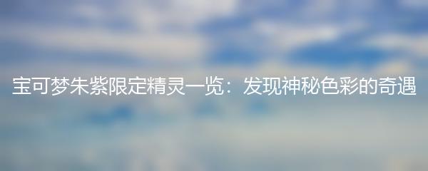 以上就是为大家带来的《宝可梦朱紫限定精灵一览:发现神秘色彩的奇遇》。在这个丰富多彩的宝可梦世界中,有许多精彩的故事和无限可能等待着训练师们去发现和探索。
