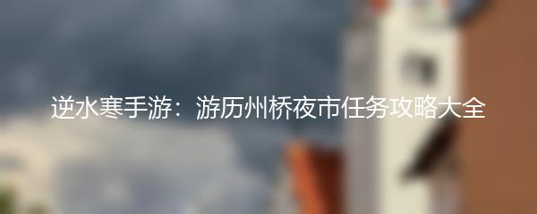 逆水寒手游:游历州桥夜市任务攻略大全