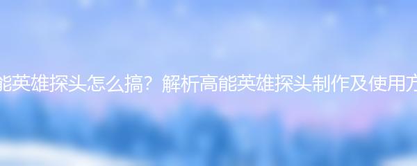 高能英雄探头怎么搞?解析高能英雄探头制作及使用方法
