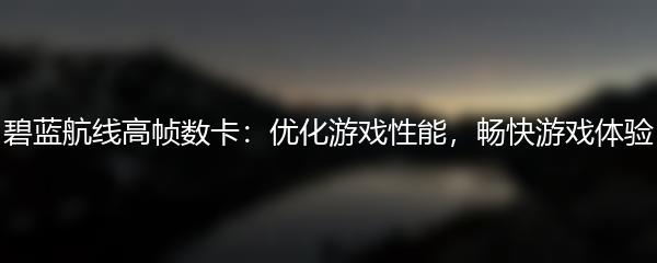 碧蓝航线高帧数卡:优化游戏性能,畅快游戏体验