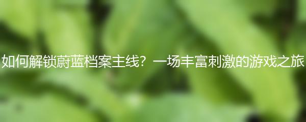 如何解锁蔚蓝档案主线?一场丰富刺激的游戏之旅