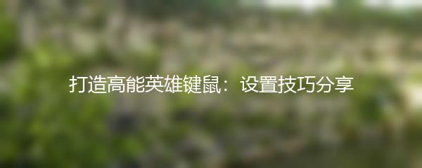 以上就是为大家带来的“打造高能英雄键鼠:设置技巧分享”内容。通过合理地调整灵敏度和DPI、配置快捷键、使用宏功能、调整键盘布局以及定期进行练习,你可以提升自己的游戏水平,成为一名真正的高能英雄。