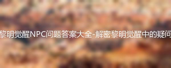 黎明觉醒NPC问题答案大全-解密黎明觉醒中的疑问