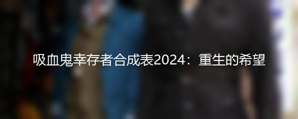 在人类和吸血鬼之间的永恒对抗中,吸血鬼幸存者一直是一个受到广泛关注的话题。如何在这个激烈的战争中存活下来成为了吸血鬼们必须面对的严峻现实。幸运的是,吸血鬼幸存者合成表2024的发布为他们带来了新的希望。