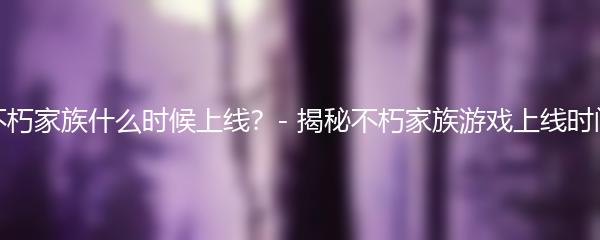 不朽家族是一款备受期待的网络游戏,那么不朽家族什么时候上线呢?让我们一起来揭秘吧!