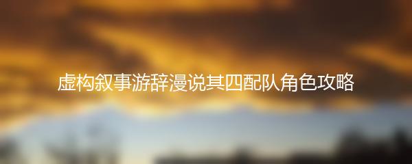 虚构叙事游辞是一款备受玩家喜爱的游戏,其四配队角色的选择十分关键。下面将为大家详细介绍虚构叙事游辞其四配队角色的攻略,助您在游戏中取得更好的成绩。