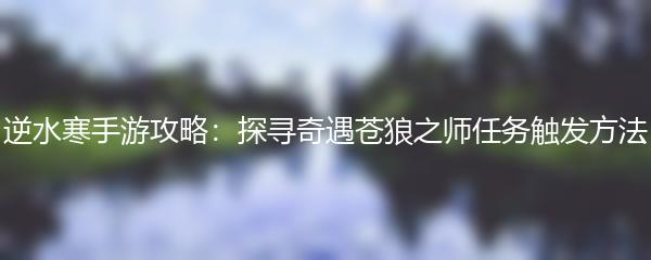 逆水寒手游攻略:探寻奇遇苍狼之师任务触发方法